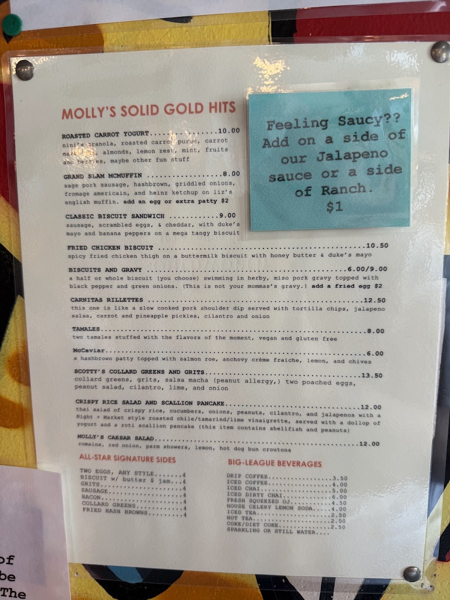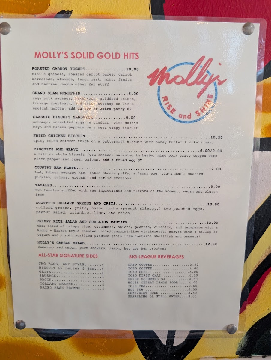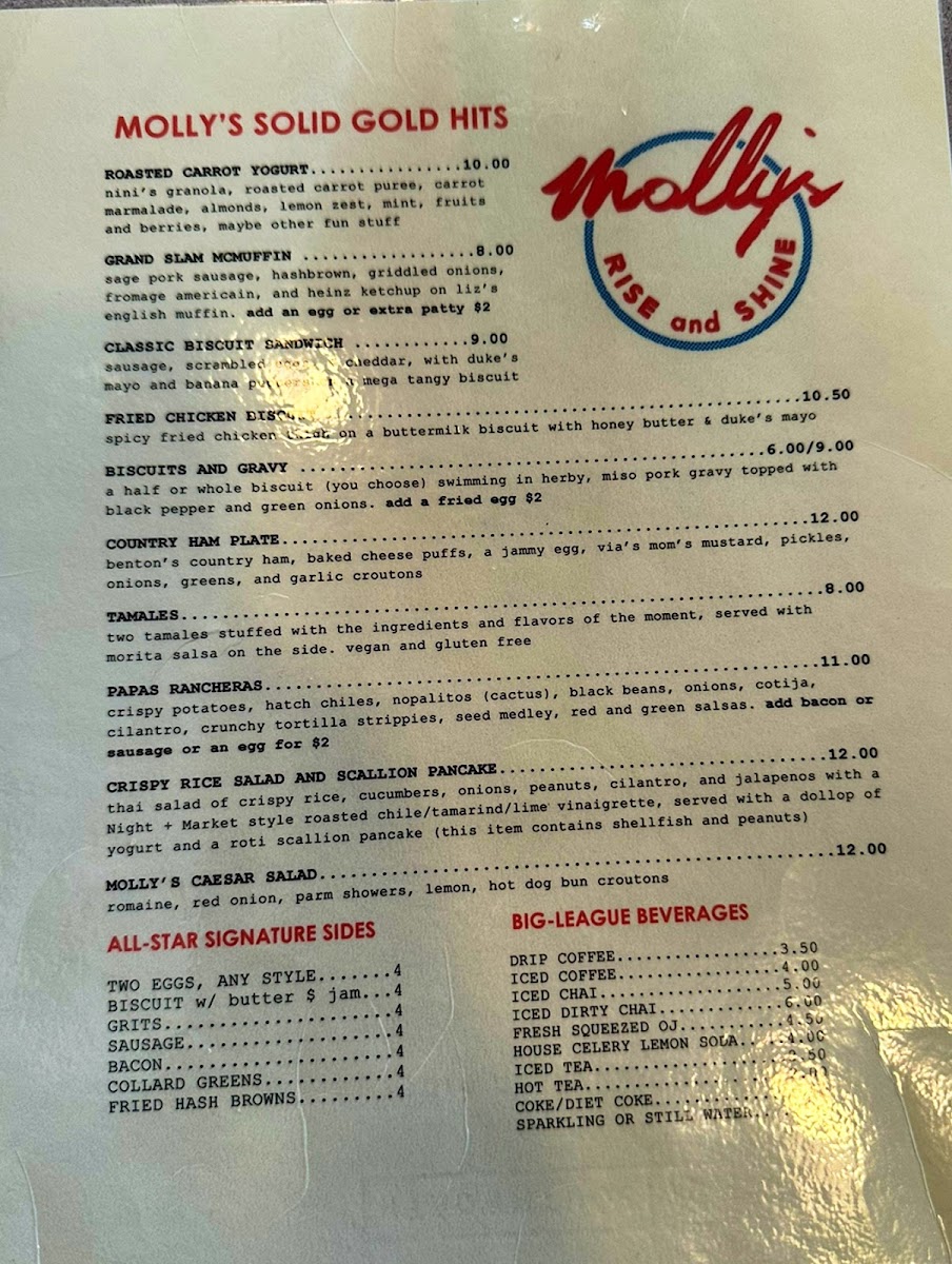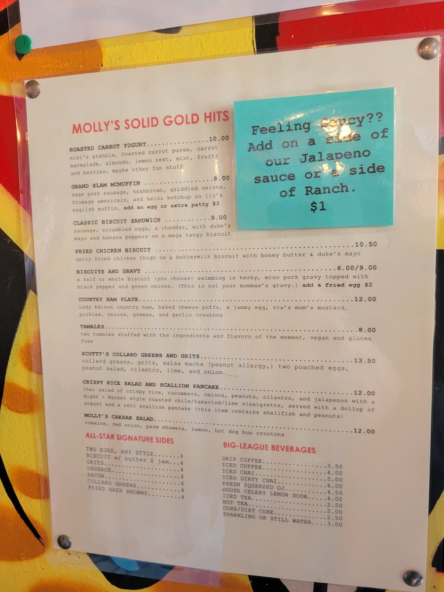Despite a few reviews mentioning that not every dish knocks it out of the park, the overwhelming consensus is that Molly's delivers solid flavors and a playful dining experience. From the fluffy pancakes to the buttery scrambled eggs, there’s no doubt that each dish is crafted with care and inspired by the culinary traditions of the South.