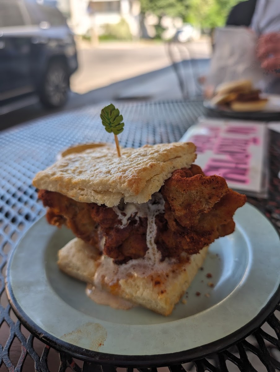 Molly's Rise and Shine is particularly celebrated for its impressive selection of biscuit sandwiches, with standout offerings that have patrons raving. Among the must-tries is the Slice of Special Eggplant, a mouthwatering concoction featuring roasted eggplant, rich red sauce, mozzarella, and a delectable olive caper tapenade topped with feta cheese. Don’t forget to pre-order a whole pie for a unique cheese pizza experience. Their fried chicken biscuit is a local favorite, celebrated for its perfect combination of sweet and spicy sauces, making every bite a flavor-packed moment to remember.